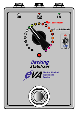 ● 本機の名称にBackingと銘打っているようにギター演奏時のバッキング時に劣化の少ない音での最適なバッキング音量、音質で出力させることが可能です。簡単に説明いたしますと 通常ブースターというものは音をブーストしてより大きい信号をアンプなどに送りこ込むために使用されます。今回設計したものは、このようにブーストもできますが逆の使い方も出来るように設計しました。